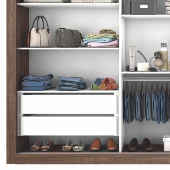 | Cor Flex | Sim, as três portas do Guarda Roupa vão pintadas dos dois lado, o cliente pode escolher montar o produto todo Gris ou Gris com Preto |